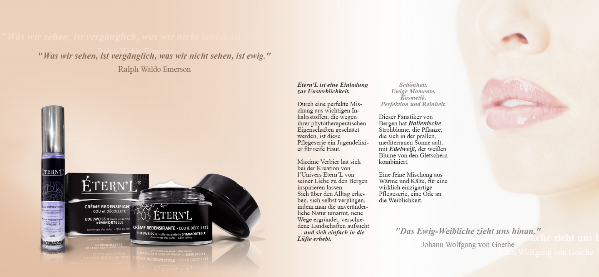 Étern’L is an invitation to immortality. A perfect blend of key ingredients acknowledged for their phytotherapeutic virtues, this care range is an elixir of youth for mature skin.