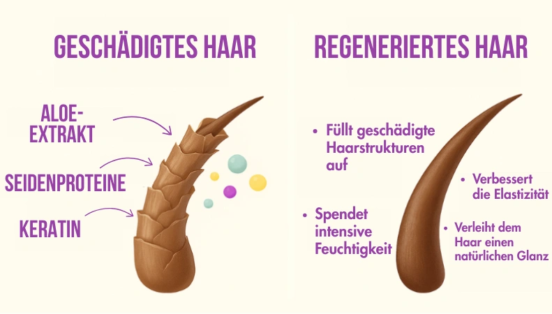 Die doppelte Kraft von Seiden- und Keratinproteinen! Veränderung des Haares ist bereits nach der ersten Anwendung sichtbar!